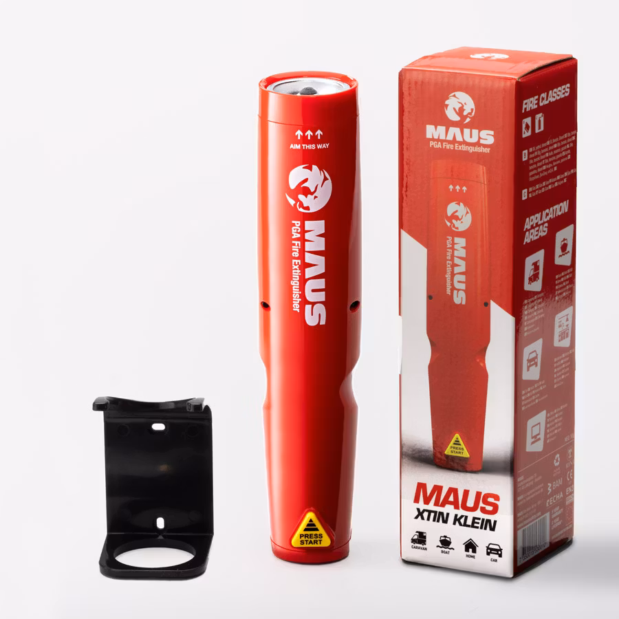 Den prisvinnande och mest mångsidiga brandsläckaren MAUS Xtin Klein är en revolution inom brandbekämpning. Den släcker elden med en patenterad kaliummix, som jämfört med andra typer av släckmedel som pulver och skum, inte förstör med släckrester. MAUS teknik släcker elden utan att skada varken motor, elektronik eller interiör. Den handhållna brandsläckaren är utvecklad i Sverige och sparar tid och pengar eftersom du undviker sanering och ersättningsanspråk hos försäkringsbolag. Det enda som förstörs när vi släcker elden med vår teknik är det som elden själv förstört. Använd alltid MAUS först så undviker du att ställa in semestern om du får en brand i din båt eller husbil. 6 års hållbarhet. 5 års garanti. Svensk CE märkning och väger mindre än en halvliter mjölk.